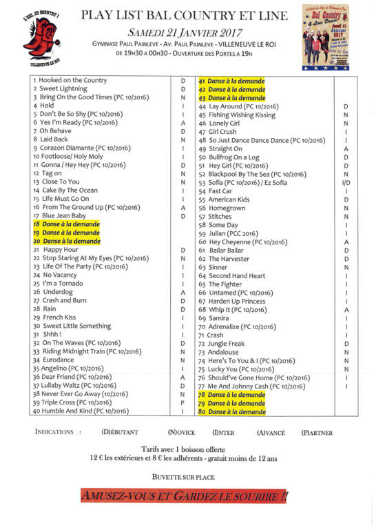 Vous l'attendiez toutes et tous, la playlist du bal du 21 janvier prochain !!! Elle est arrivée ... à vos révisions et à bientôt donc sur le parquet.