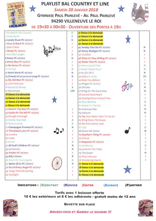 PLAYLIST BAL COUNTRY ET LINE du Samedi 20 Janvier 2018